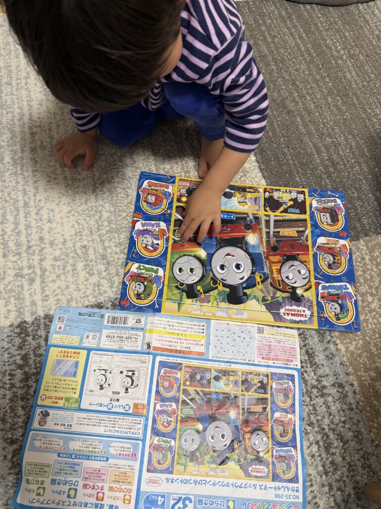 “完成形の手本をまず見せる”ことで、子どもの理解が早く、パズルは今でも大好きなおもちゃになっています