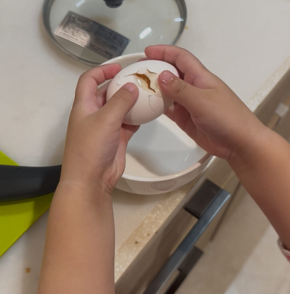 はじめは卵を強く叩きすぎたり、殻が入ったりしましたが、
