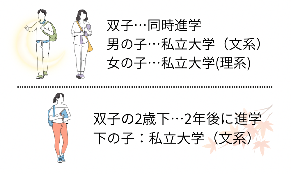 双子(私立文系1人・私立理系1人)+下の子(私立文系)・2歳差