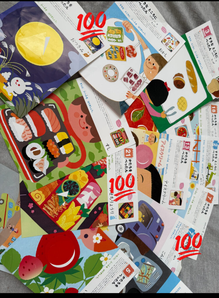 実際に2歳の時と3歳(現在)の時に、シールブックのワークの取組方や理解度が全然違うように感じました。楽しい、嬉しいなどの気持ちがまたやりたいというモチベーションにつながってくると思うので、全部やりたいだけやらすのではなく、ある程度で「また明日つづきしようね」と声かけするようにしています。